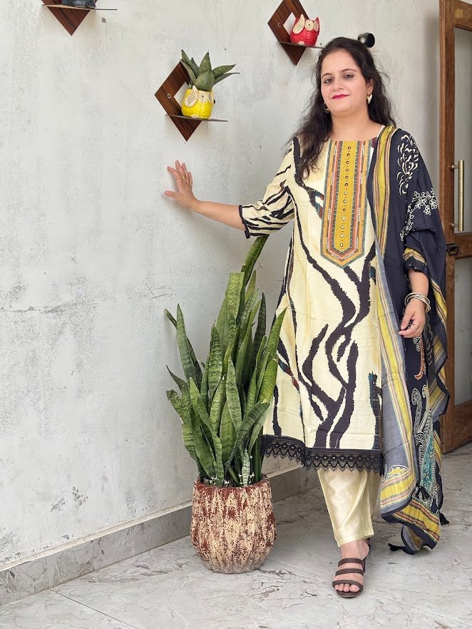 * Set Includes: Kurta, Trousers, and Printed Dupatta