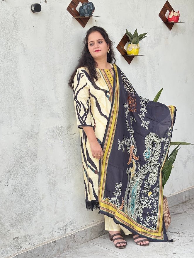 Abstract Tiger-Print Suit Set with Kalamkari-Style Dupatta