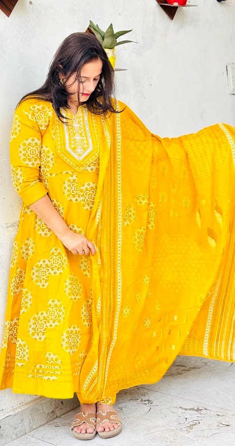 Printed Cotton Kurta Set with Dupatta