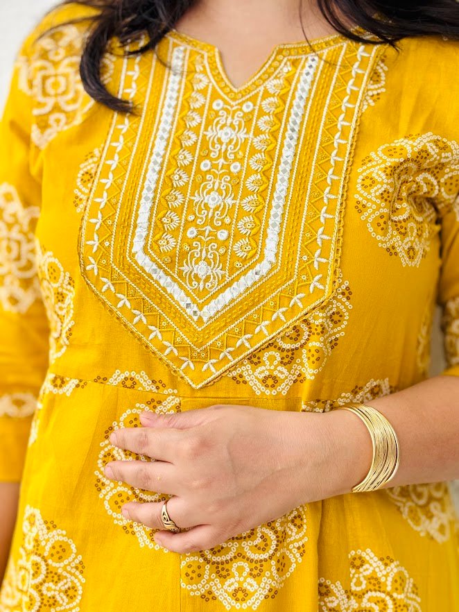 Vibrant Yellow Bandhani Flare Kurta Set